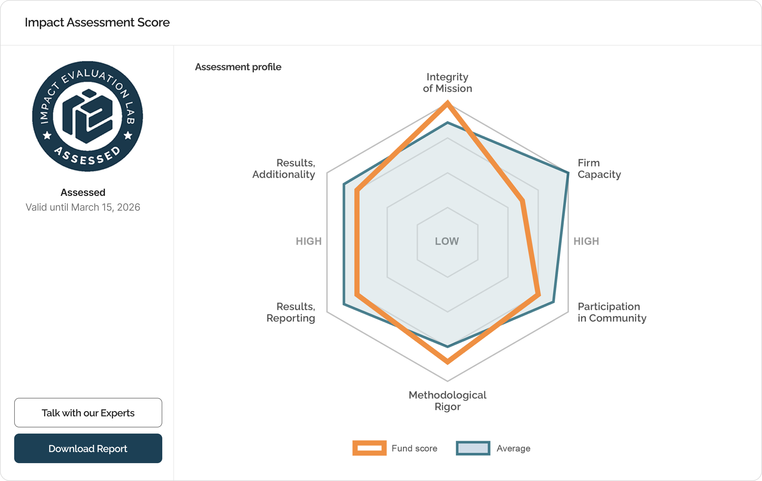 Impact investing is evolving fast—and so are expectations for transparency and performance. The Impact Evaluation Lab delivers data-driven due diligence that builds trust and confidence, giving investors and fund managers the same rigorous insights they rely on in traditional finance.
